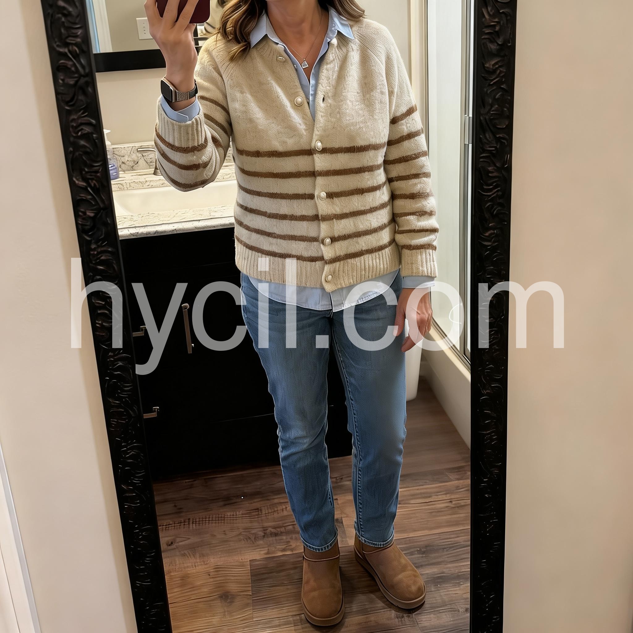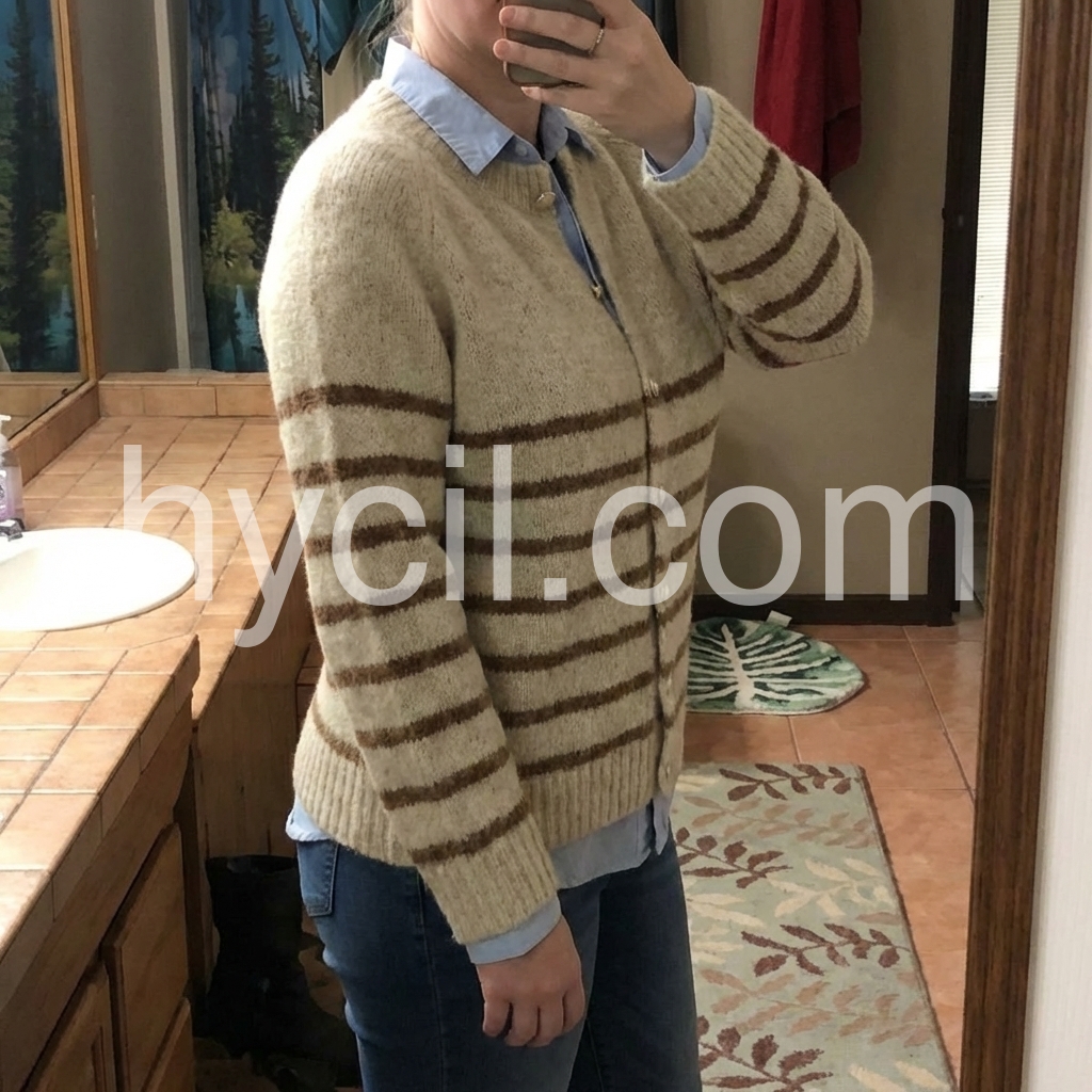 Yes!It runs true to the garment size chart please choose your size based on your measurements.This Apricot Long Sleeve Striped Cardigan is a versatile addition to any wardrobe. Perfect for cooler days, it features a timeless striped design and long sleeves for added warmth. Made from high-quality materials, it's both comfortable and stylish, making it the perfect option for everyday wear. With its classic design and practical features, this cardigan is a must-have for any fashion-forward individual.