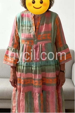 Fresh Print 3/4 Sleeve Mini Dress