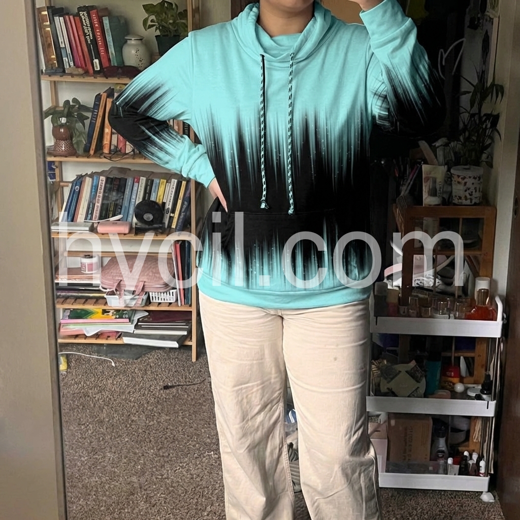 Aqua & Black Ombre Rain Hoodie Drawstring Sweatshirt