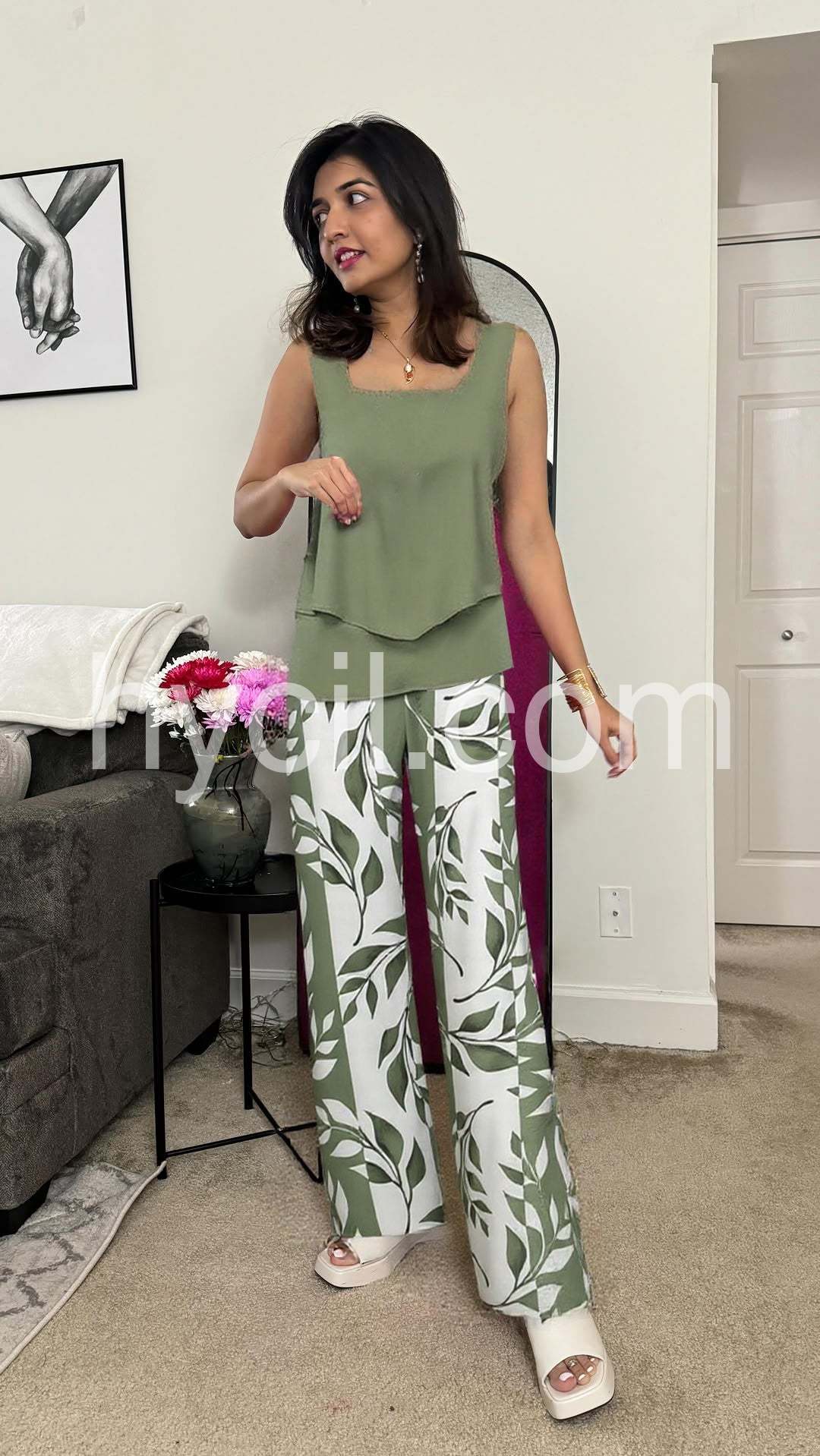 Yes!It runs true to the garment size chart please choose your size based on your measurements.This contemporary two-piece set features a playful green plant print and a stylish square neckline. Crafted with high-quality materials, it offers both comfort and fashion. Perfect for any occasion, this set is designed to elevate your wardrobe and make a statement.