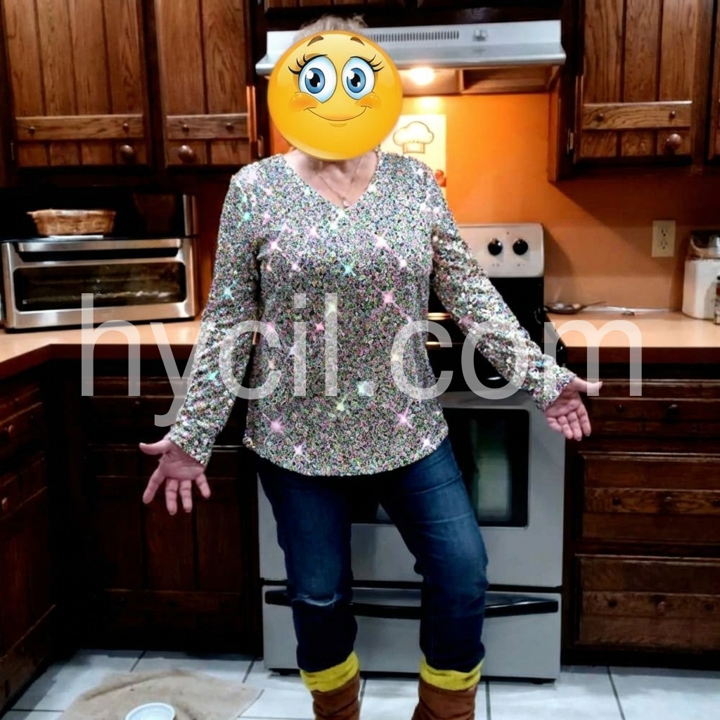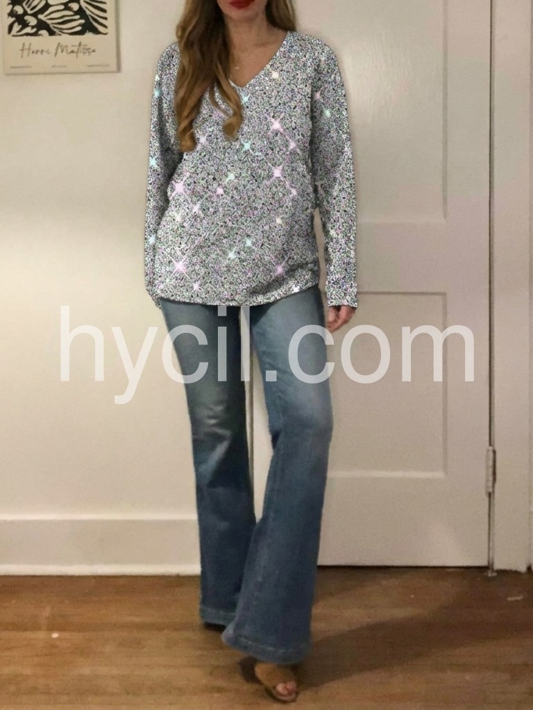 Disco Ball Tinsel Metallic Print Long Sleeve Top