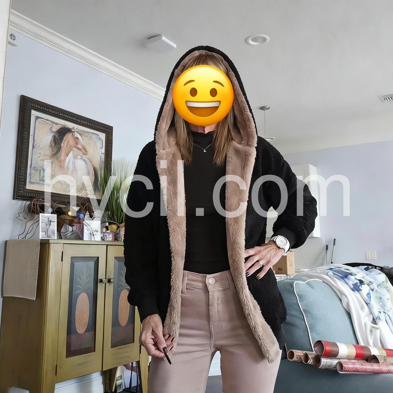 Baggy Faux Fur Lined Hooded Open Front Cardigan