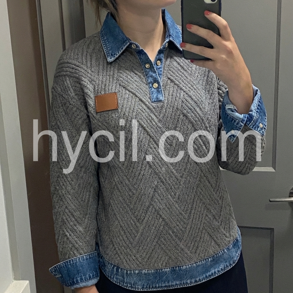 Yes!It runs true to the garment size chart please choose your size based on your measurements.Elevate your casual wardrobe with this sophisticated grey herringbone knit sweater, featuring a distinctive denim collar that bridges the gap between refined knitwear and relaxed styling. The herringbone texture adds visual depth and dimension, while the contrasting denim collar provides a contemporary edge perfect for layering or wearing standalone. Crafted for versatility, this piece transitions seamlessly from weekend wear to smart-casual settings, offering both comfort and polished appeal.