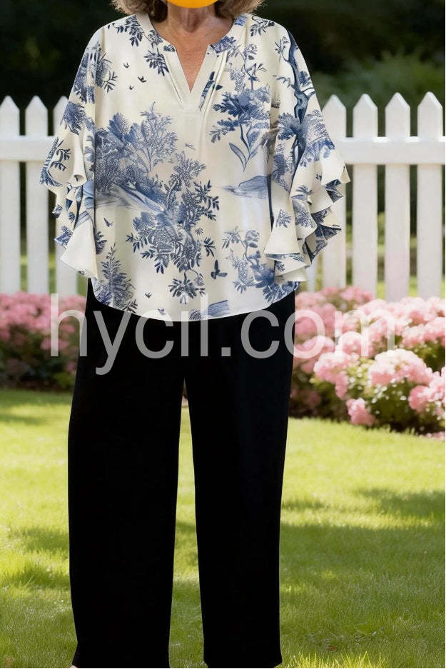 Charming Blue Toile Print Blouse