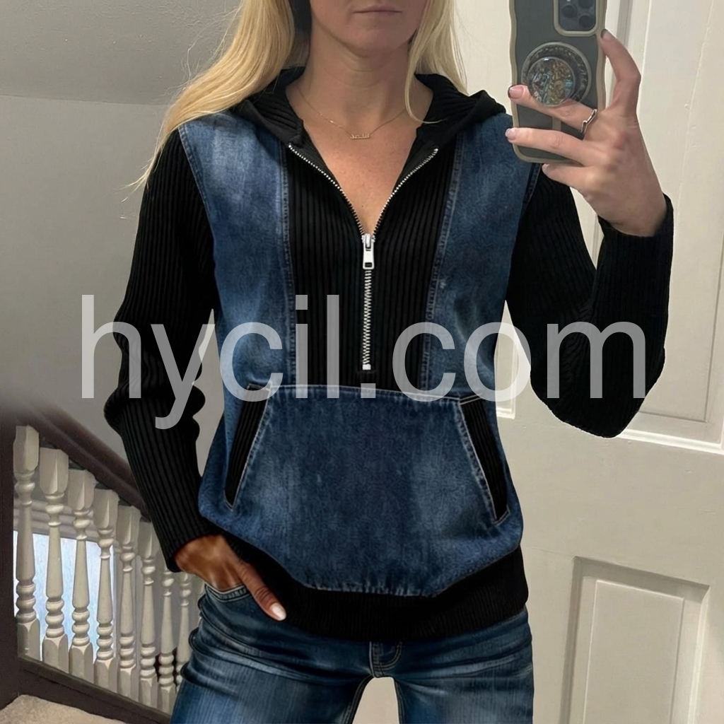 Cool Half Zip Kangaroo Pocket Denim Sweatshirt