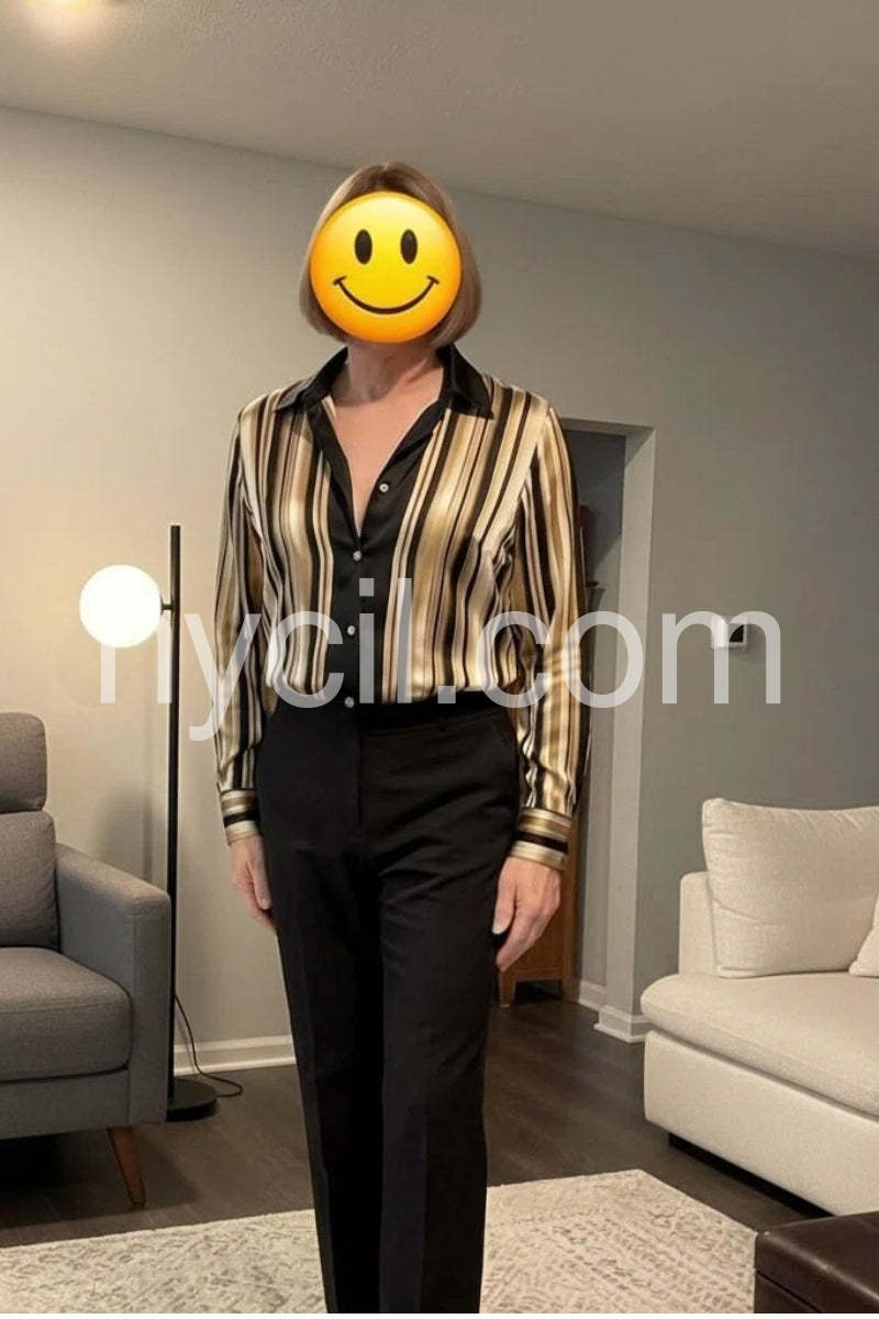 Yes!It runs true to the garment size chart please choose your size based on your measurements.Elevate your wardrobe with this sophisticated striped satin blouse, crafted from luxurious fabric that drapes beautifully against the skin. The classic button-down silhouette offers timeless versatility, seamlessly transitioning from professional settings to evening occasions. Subtle stripes add visual interest without overwhelming your look, while the satin finish delivers an understated elegance. Perfect for layering or wearing solo, this piece pairs effortlessly with tailored trousers, skirts, or denim for a polished appearance that works season after season.