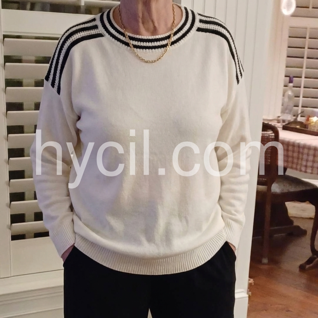 Yes!It runs true to the garment size chart please choose your size based on your measurements.Experience the classic, sophisticated style of our Ivory Color Block Round Neck Sweater. Crafted with a round neckline and timeless ivory color blocking, this sweater effortlessly elevates any outfit. Made with high-quality materials, it provides both warmth and comfort, perfect for all-day wear. Add this staple piece to your winter wardrobe today.