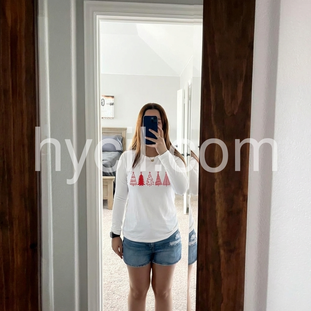 Celebrate the holidays in chic style with this casual Christmas top. A round collar and long sleeves with a waist-length fit make it perfect for layering with a cami underneath and your favorite jacket. A row of cute red Christmas trees gives it just enough holiday cheer, making it versatile enough to wear to work, out, or casually.
