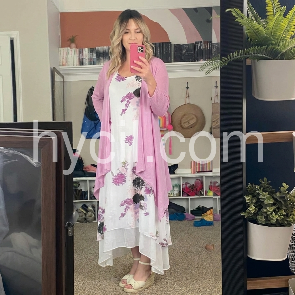 Yes!It runs true to the garment size chart please choose your size based on your measurements.Upgrade your wardrobe with our Chic Floral Print Midi Dress! This versatile piece comes with a stylish outerwear, perfect for any occasion. The elegant floral print adds a touch of sophistication, while the mid-length design provides both comfort and style. Elevate your fashion game with this must-have dress.