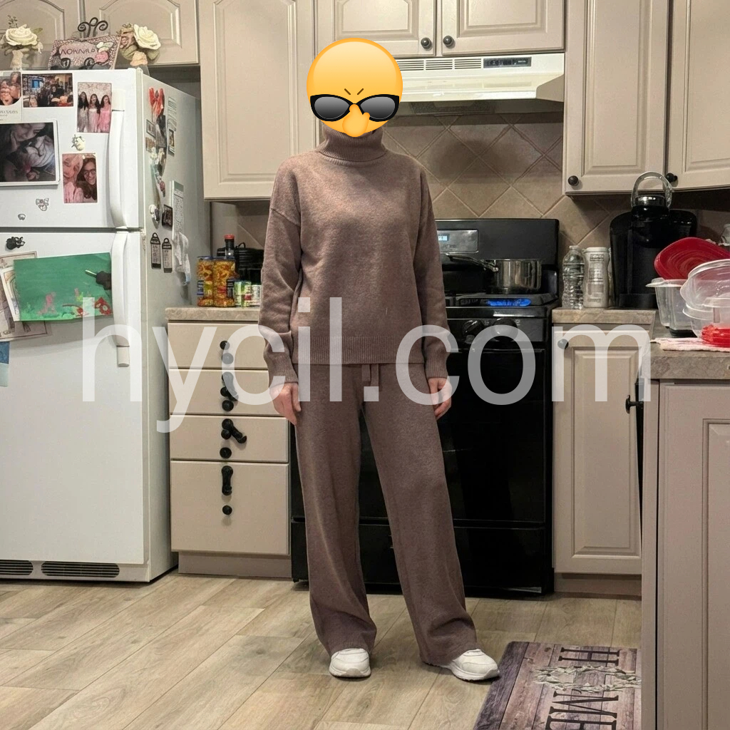 Ultra-chic yet effortless, this knit set takes loungewear to a new level. As comfortable as pajamas, the monocolor two-piece looks like it was pulled straight from the runway. The laid-back glam style features a sweater with a ribbed turtleneck and dropped shoulders and drawstring pants with a gently flared leg.