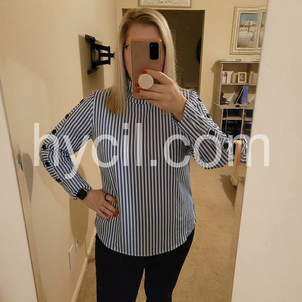 Yes!It runs true to the garment size chart please choose your size based on your measurements.This Blue Striped High Neck Top is a versatile and stylish addition to any wardrobe. Made with high-quality fabric and featuring a flattering high neck design, this top is perfect for both casual and formal occasions. The classic blue stripes add a pop of color and sophistication to any outfit.