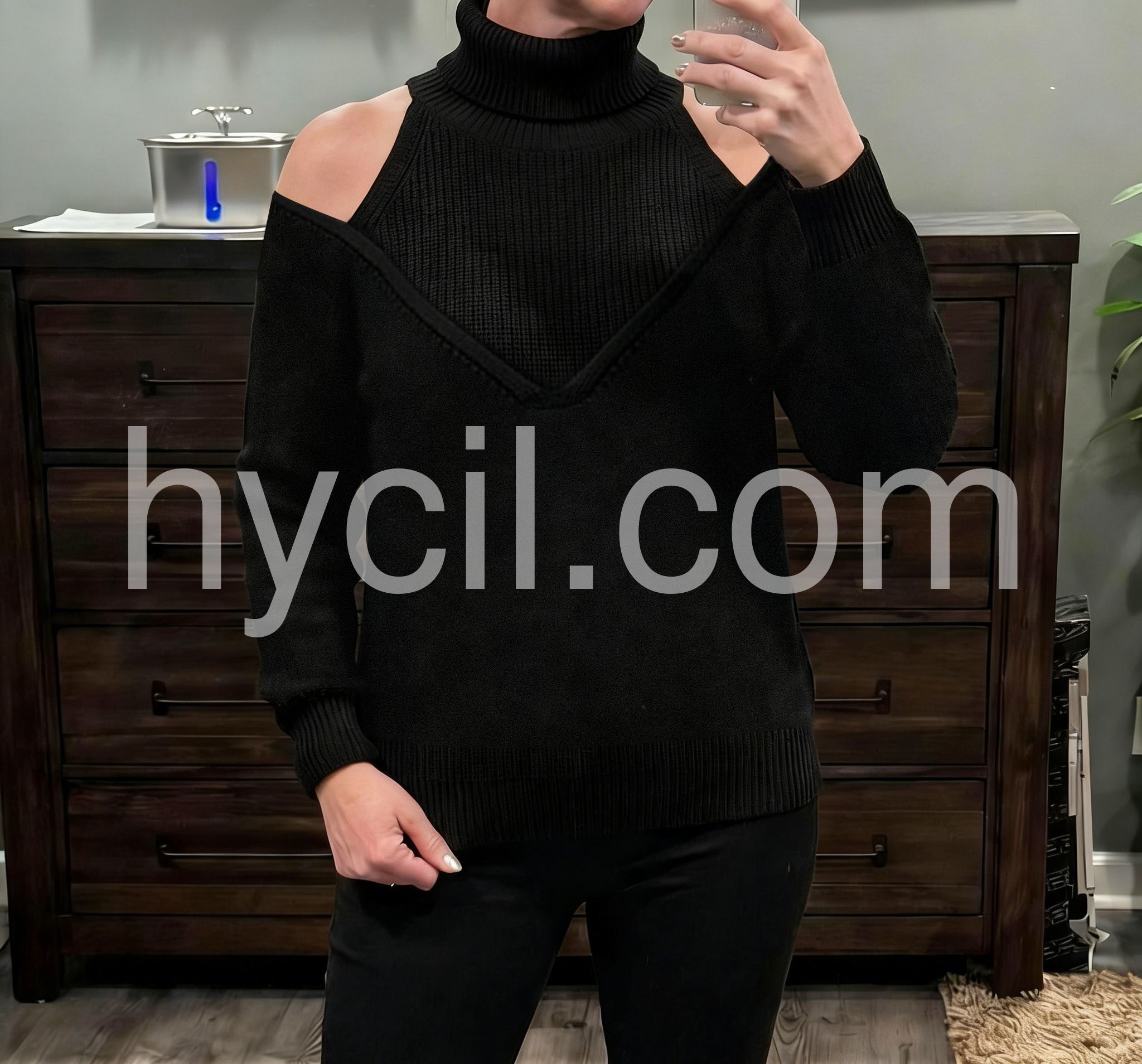 Black Plain Off The Shoulder Turtleneck Knit Sweater