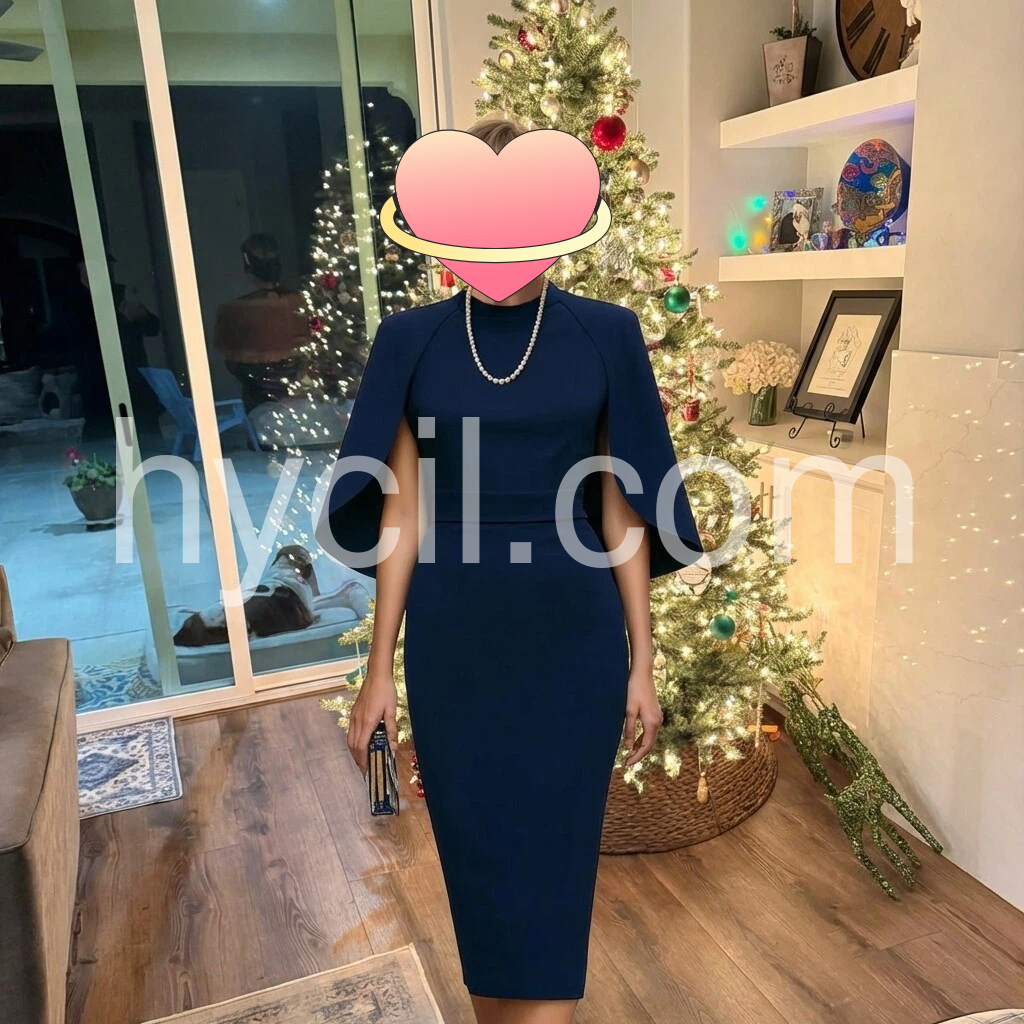 Yes!It runs true to the garment size chart please choose your size based on your measurements.Elevate your workweek wardrobe with this sophisticated navy pencil midi dress. The mock neck provides polished structure, while dramatic cape sleeves add contemporary flair and movement. A shirred waist creates flattering definition and ensures comfortable all-day wear. The midi length strikes the perfect balance between professional and refined, making it ideal for office settings, client meetings, or elevated casual occasions. Versatile enough to transition from day to evening with minimal accessorizing, this dress combines timeless elegance with modern design details.