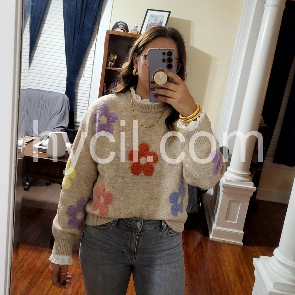 Yes!It runs true to the garment size chart please choose your size based on your measurements.This elegant apricot round neck sweater is a stylish addition to any wardrobe. Made from high-quality materials, it offers both comfort and sophistication. The round neckline adds a touch of elegance, while the color complements a variety of outfits. Perfect for any occasion, this sweater is a must-have for fashion-forward individuals.