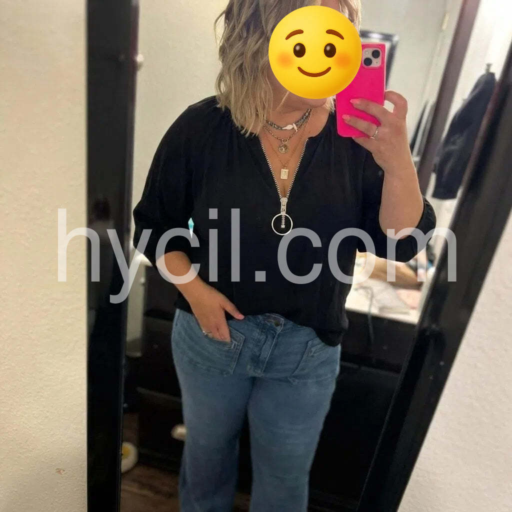 Yes!It runs true to the garment size chart please choose your size based on your measurements.This versatile black zip-up top features a classic V-neckline and clean, minimalist design that transitions seamlessly from casual to professional settings. The full-length zipper allows for easy layering and temperature control, making it an essential wardrobe staple. Crafted in a neutral shade, it pairs effortlessly with virtually any outfit in your collection. The structured fit provides a polished silhouette while maintaining comfort for all-day wear.